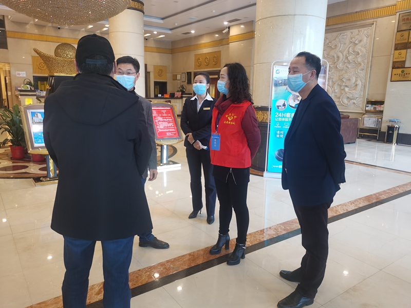 神龍大酒店是衡陽(yáng)知名四星級(jí)酒店。目前,酒店關(guān)閉餐飲娛樂部門,僅留客房部繼續(xù)營(yíng)業(yè)。為確保防疫復(fù)工順利開展,弘湘國(guó)投選派聯(lián)絡(luò)員進(jìn)駐商業(yè)大廈,專門負(fù)責(zé)督導(dǎo)神龍大酒店疫情防控工作。陳新驥在與企業(yè)負(fù)責(zé)人和酒店負(fù)責(zé)人交談了解情況后,針對(duì)酒店人員流動(dòng)性大、構(gòu)成復(fù)雜的特點(diǎn),強(qiáng)調(diào):要重點(diǎn)督促酒店進(jìn)出人員測(cè)量體溫、佩戴口罩、衛(wèi)生措施、員工食堂分餐、員工宿舍衛(wèi)生和日常消毒情況。聯(lián)絡(luò)員要每日?qǐng)?bào)告商業(yè)大廈復(fù)工復(fù)產(chǎn)企業(yè)和防疫工作情況,要有紀(jì)律,要勇于擔(dān)當(dāng),為企業(yè)辦實(shí)事,解難事。我們既要打贏疫情防控戰(zhàn),也要幫助保護(hù)好衡陽(yáng)本地知名企業(yè)。