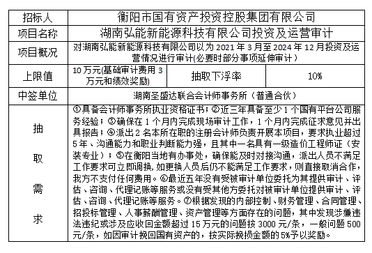 湖南弘能新能源科技有限公司投資及運營審計項目抽取結果公示