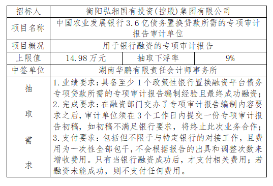 招 標(biāo) 人:衡陽弘湘國有投資(控股)集團(tuán)有限公司
