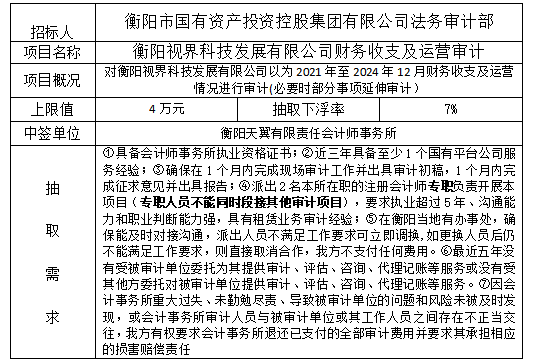 衡陽(yáng)視界科技發(fā)展有限公司財(cái)務(wù)收支及運(yùn)營(yíng)審計(jì)項(xiàng)目抽取結(jié)果公示